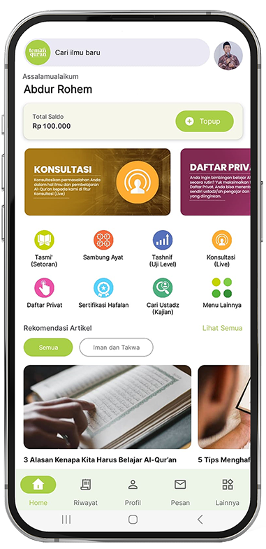 Dengan menggunakan layanan aplikasi TemanQuran, berarti Anda ikut berpartisipasi untuk menciptakan lapangan pekerjaan dan tambahan penghasilan bagi guru-guru Al-Qur’an di Indonesia.