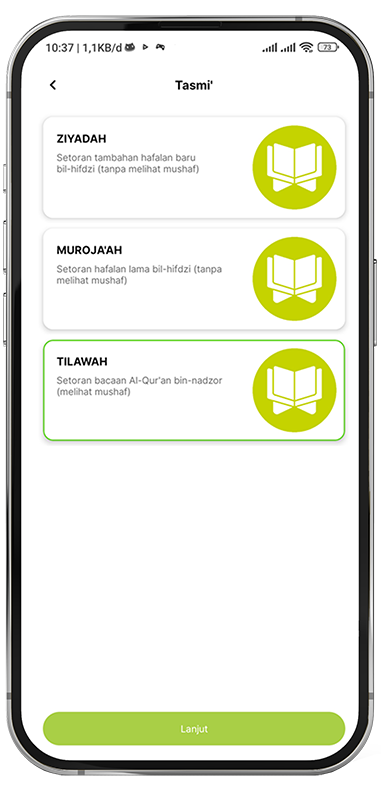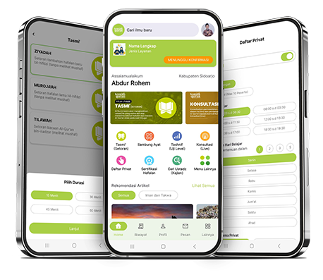 Layanan setoran hafalan dan tilawah secara live (video call) langsung di dalam aplikasi. Peserta dapat memilih ustadz/ ah secara mandiri dan menentukan durasi setoran yang dinginkan. Setoran langsung dilakukan realtime pada waktu tersebut.