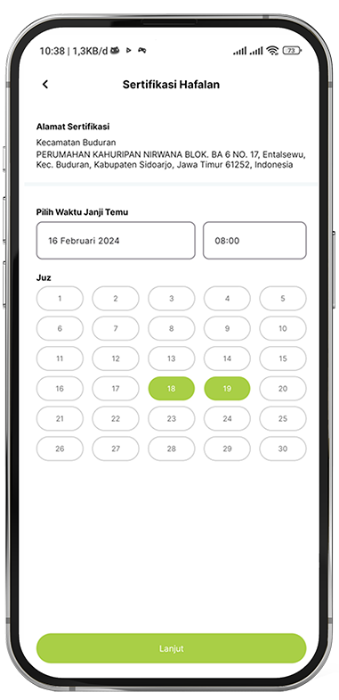 Layanan uji hafalan untuk juz-juz tertentu. Peserta dapat menentukan waktu ujian dan jumlah juz yang akan diujikan. Setelah peserta dinyatakan lulus, peserta akan mendapatkan sertifikat dari kami.
